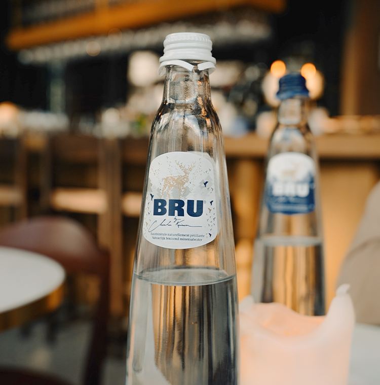 Het poëtische en geometrische universum van Belgisch kunstenaar Charles Kaisin ontvouwt zich rond het natuurlijk bruisende water van BRU®. Als meester in origami zoekt Charles Kaisin naar het onverwachte, en plooit het in dienst van elegantie en verfijning. Zo wordt duidelijk hoe gelijkaardig het universum van de kunstenaar en dat van BRU® wel zijn, met dezelfde aandacht voor het pure, het respect voor de natuur en de kunst van het detail.